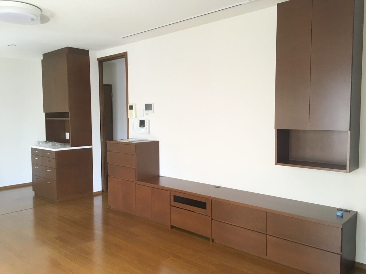 リノベーション前はキッチンとリビングダイニングが分かれている間取りでしたが、それぞれに設ける造作家具の色合いやデザインを統一して、広く一体に使えるLDKに変えました。