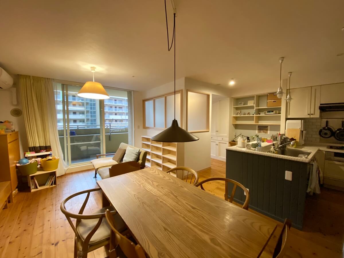 マンション購入時にLDKは広い空間としてリフォームしていたそうなのですが、お子さんが大きくなるにつれて居場所が作りにくく物も片付けにくくなったそうです。