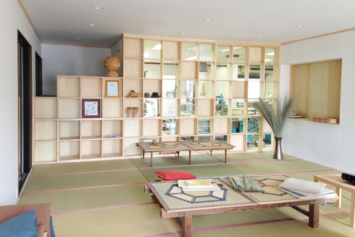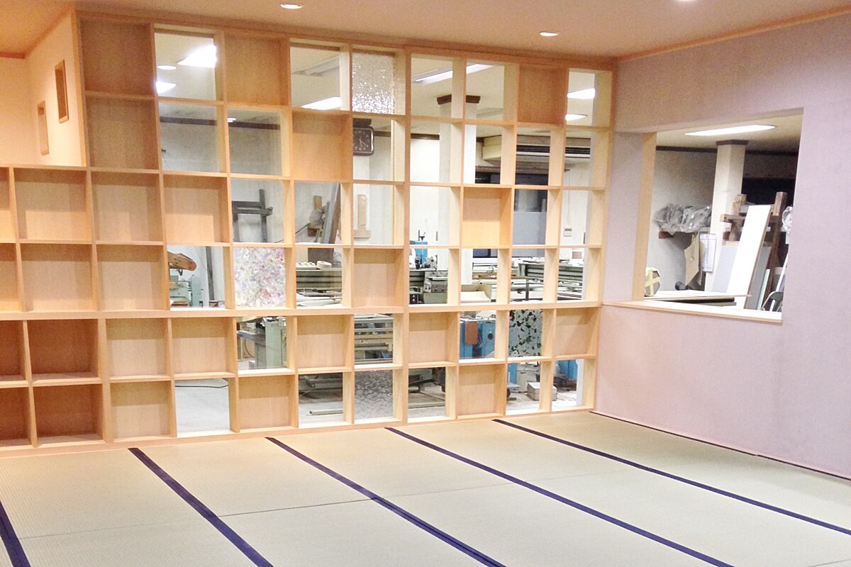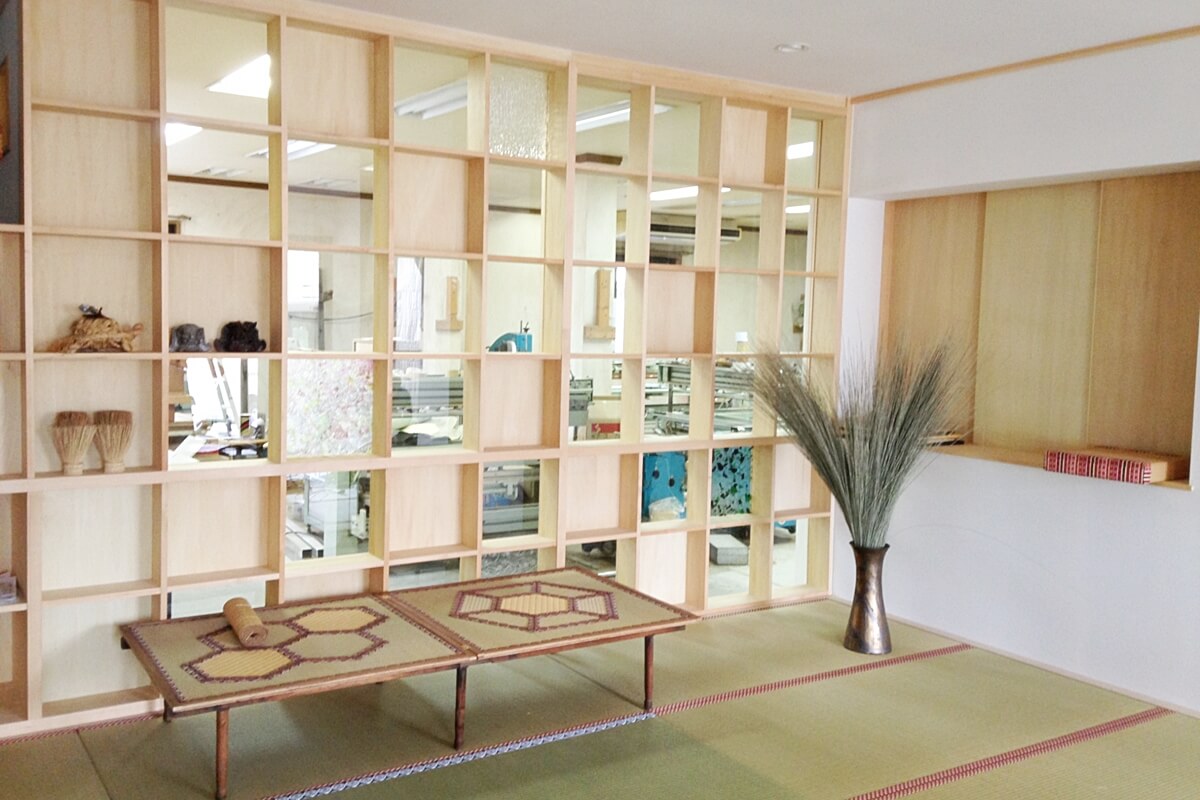 畳の間と畳工房の間は視覚的には見え、工房で作業をしたときのホコリが畳の間には入れたくない。