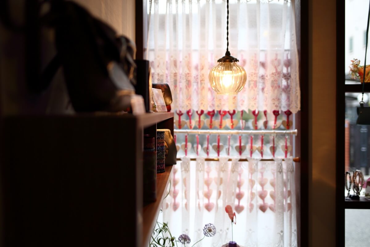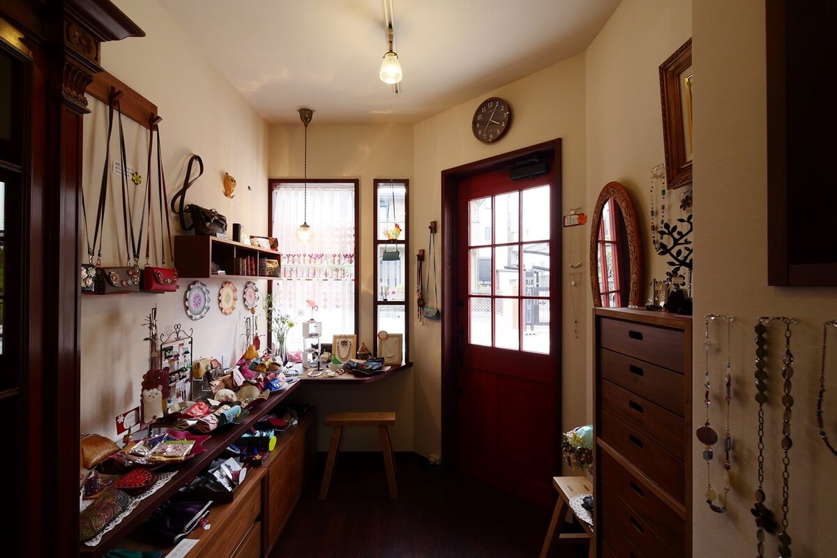 革細工をつくるお母さまとアクセサリーをつくる娘さんのための店舗を、お手持ちの家具やおしゃれな照明などを活かしてデザインしました。