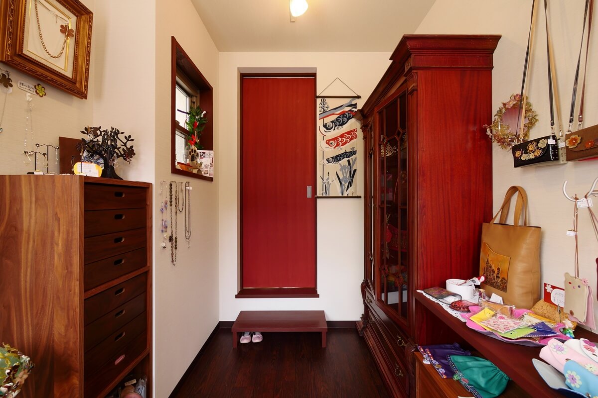 赤い扉が特徴の女性らしいアトリエショップになりました。