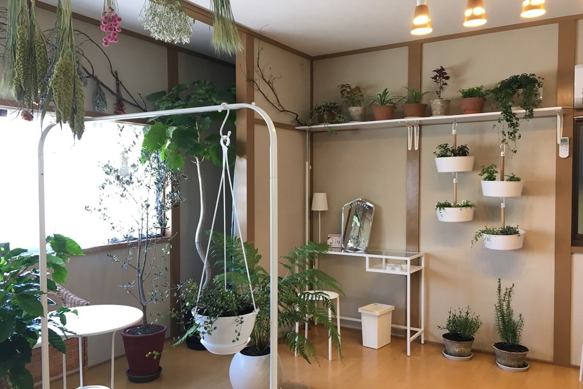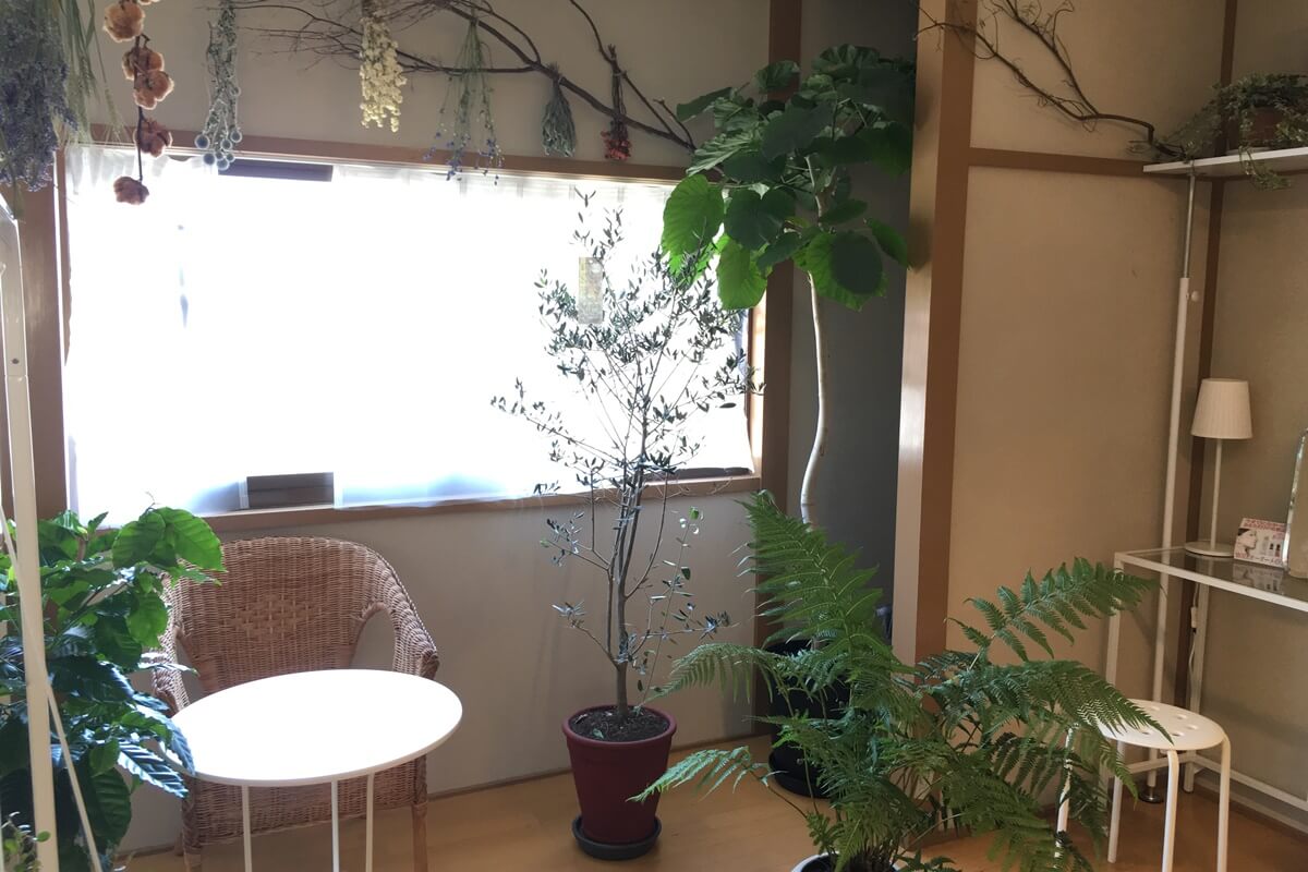 少し古い和室のような部屋をサロンらしい明るい内装にするためにインテリアのアドバイスが欲しいというご相談依頼を頂きました。オーナーの好きな空間のイメージは白、自然、植物、グリーン…。それを聞いて、この部屋に新しくクロスを貼るよりもインドアグリーンを演出したほうが良いのではないかとご提案しました。