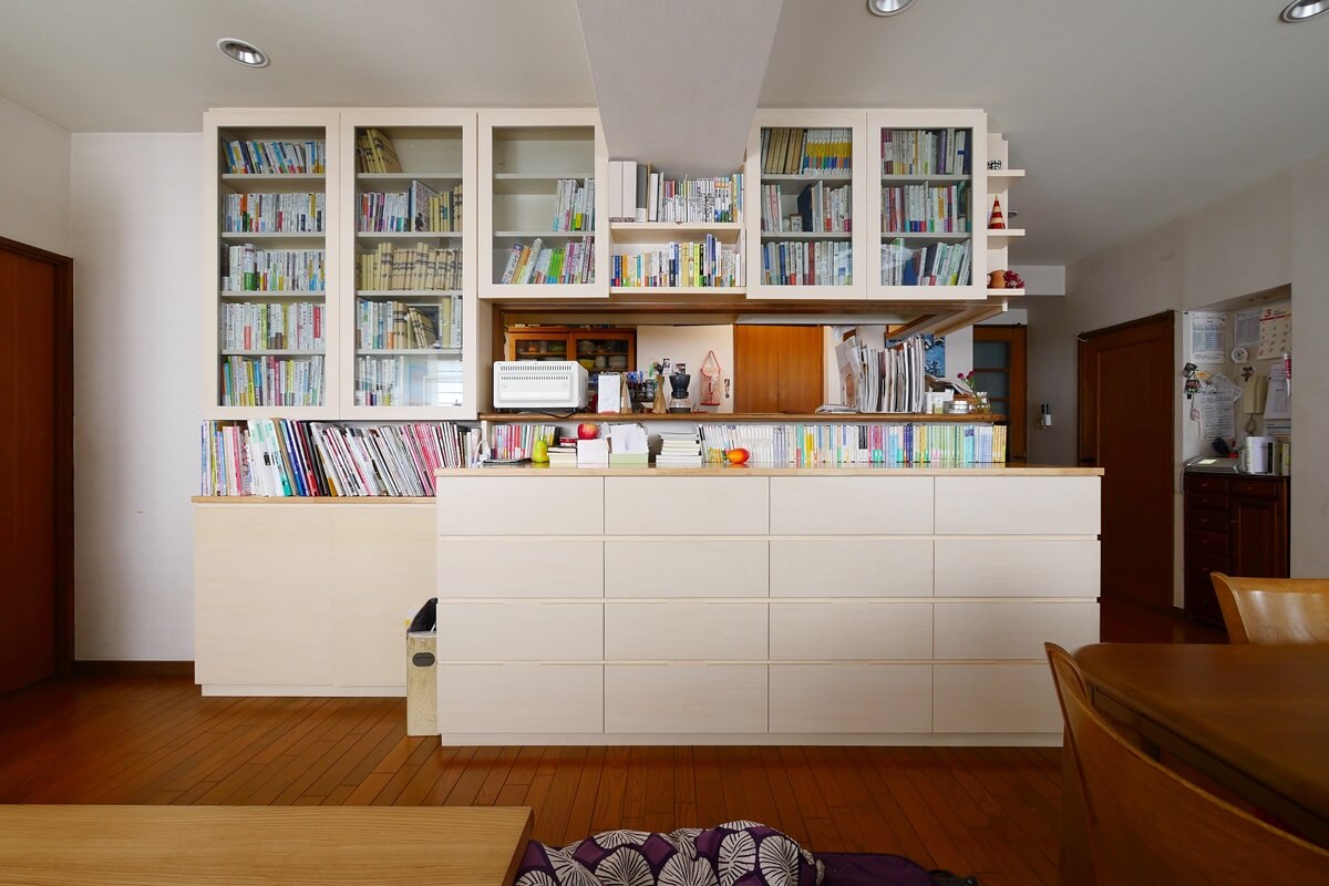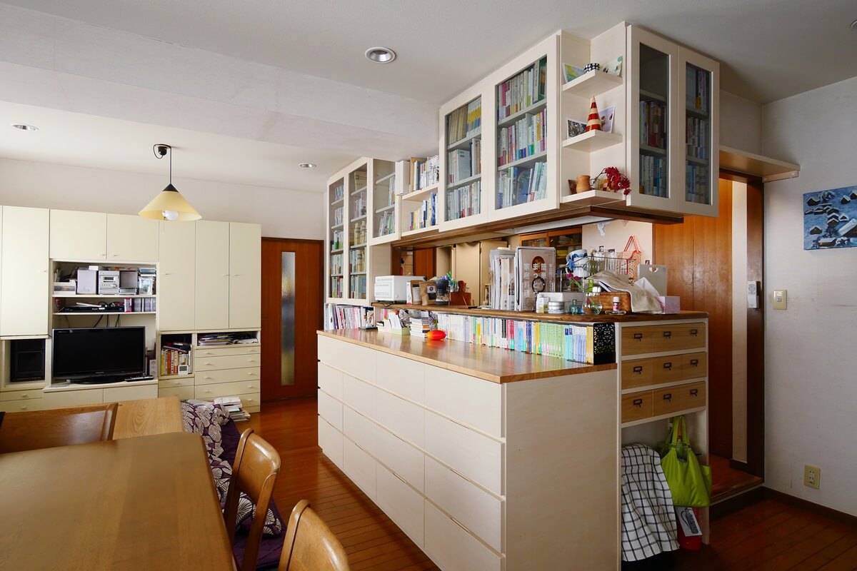 いつも家族がいる場所は家族が皆心地よいと思っている場所なのです。それを認めながら「居場所」とその場所で使うものの「収納」、さらに使えていない空間を使うようになるアドバイスをしました。アドバイスから暮らしが変わり、他の収納部分も少しずつ見直して居場所がいくつもある住まいに変わりました。